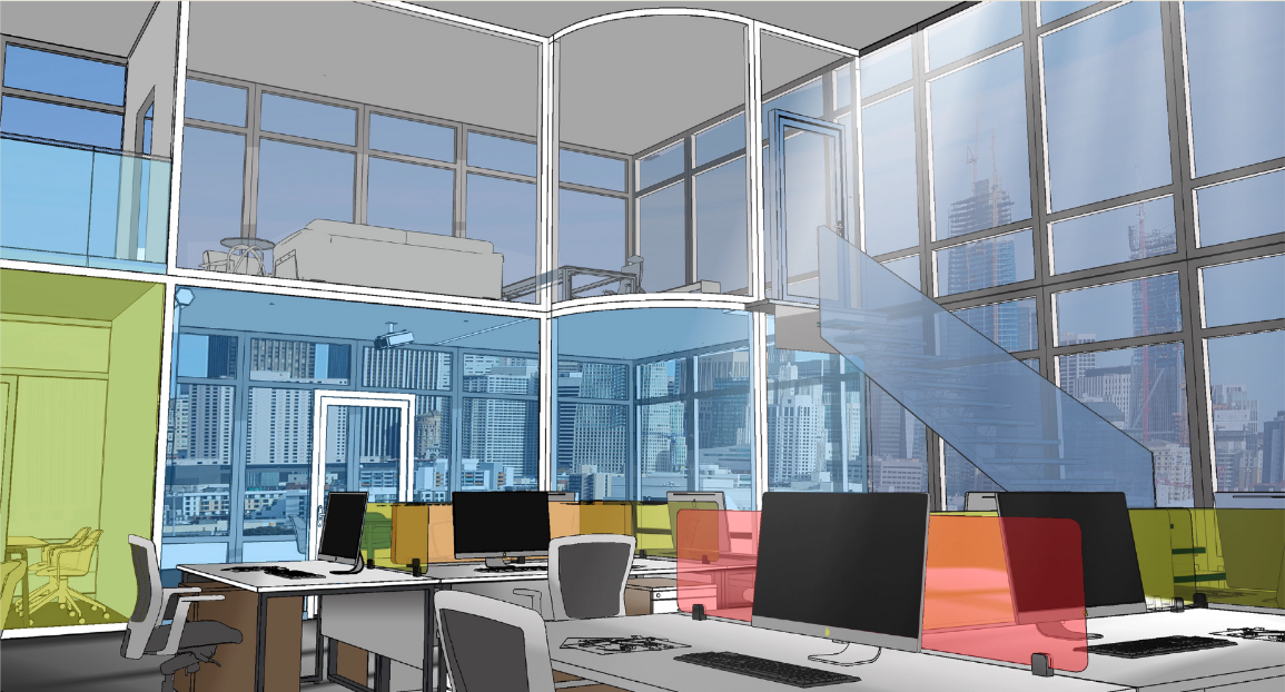 "Zoey's Extraordinary Playlist" is a captivating musical TV show set against the backdrop of San Francisco, where Zoey, a newcomer to a cutting-edge IT company, finds herself in a bustling skyscraper office. The use of glass and transparency as central design elements, symbolizes the transparency of emotions and connections in Zoey's life. When the music cues begin, the entire cast seamlessly joins in, breaking into song and dance that effortlessly weaves into the storyline. The two-story office space opens up expansive views while symbolically highlighting the initial power dynamic between Zoey and her new boss, Jane. The vibrant use of three core colors - red, yellow, and blue - infuses the set with original energy, reflecting the theme of creativity rooted in the fundamentals of human emotion and expression.