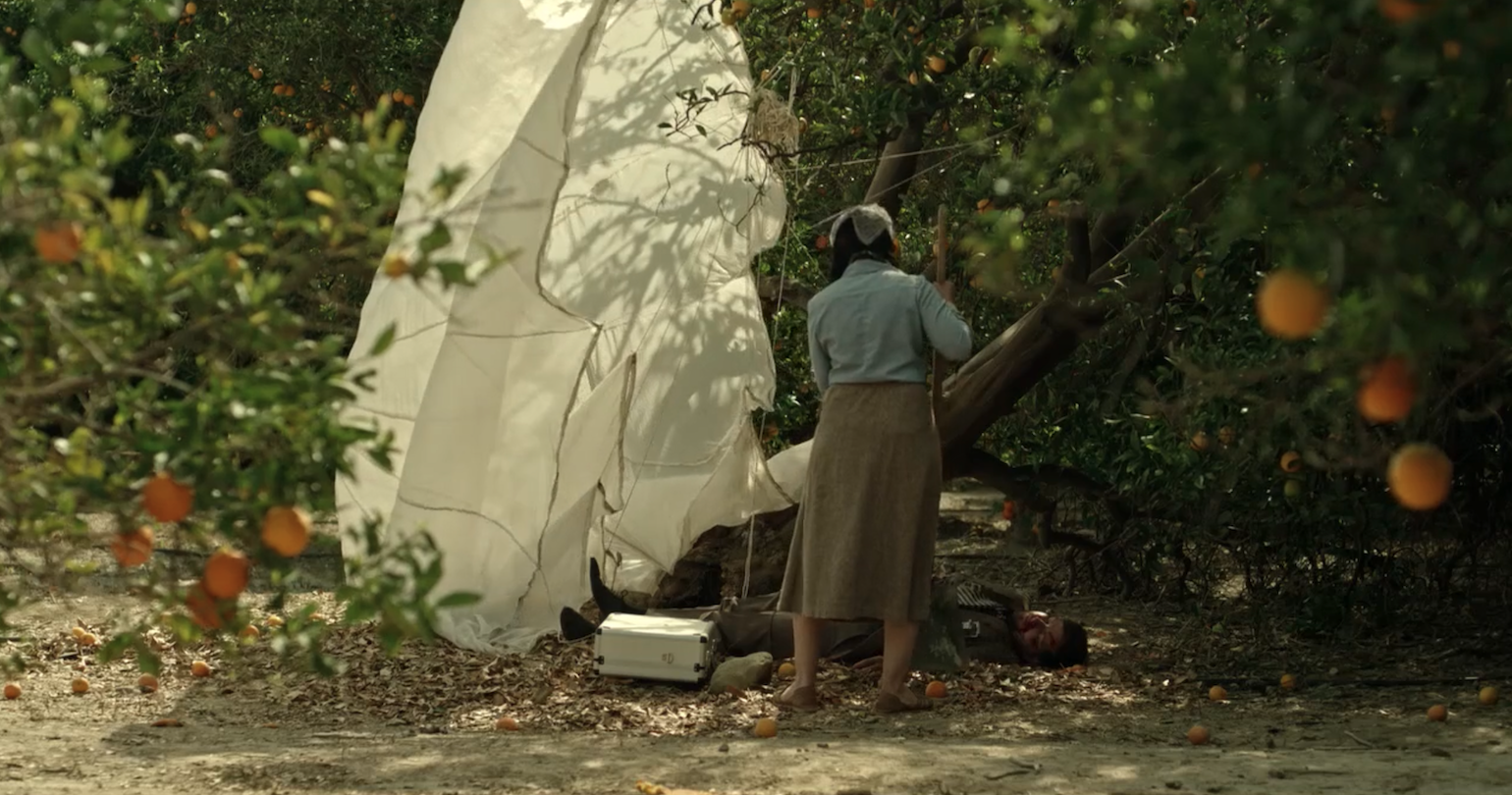 Orange Grove is the story of Patty, a single mom working long hours in the orange grove. One back-breaking day, she finds a parachute attached to a metal briefcase, which is handcuffed to a dead body. Patty’s determination to provide for her daughter drives her to chops the man’s hand clean off, freeing the briefcase from his body. The man wasn’t dead after all! A thrilling chase-and-hide sequence ensues as Patty tries desperately to keep herself, and the briefcase, safe from the parachuter.